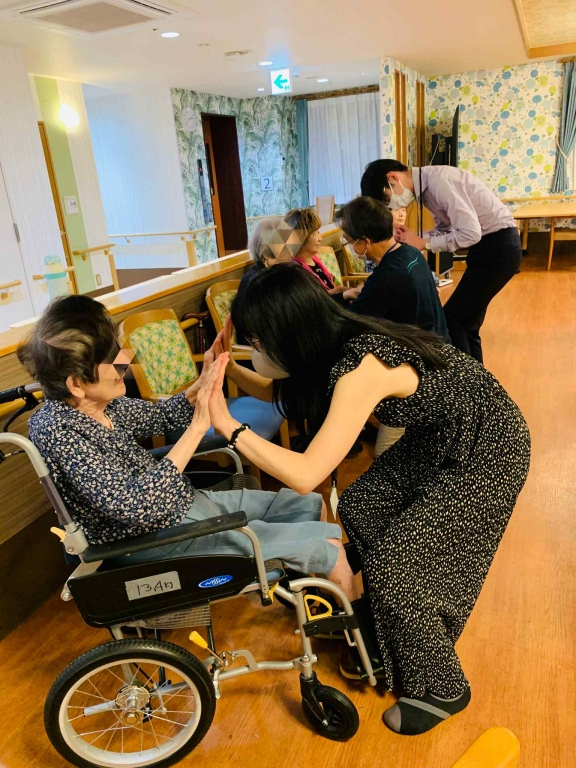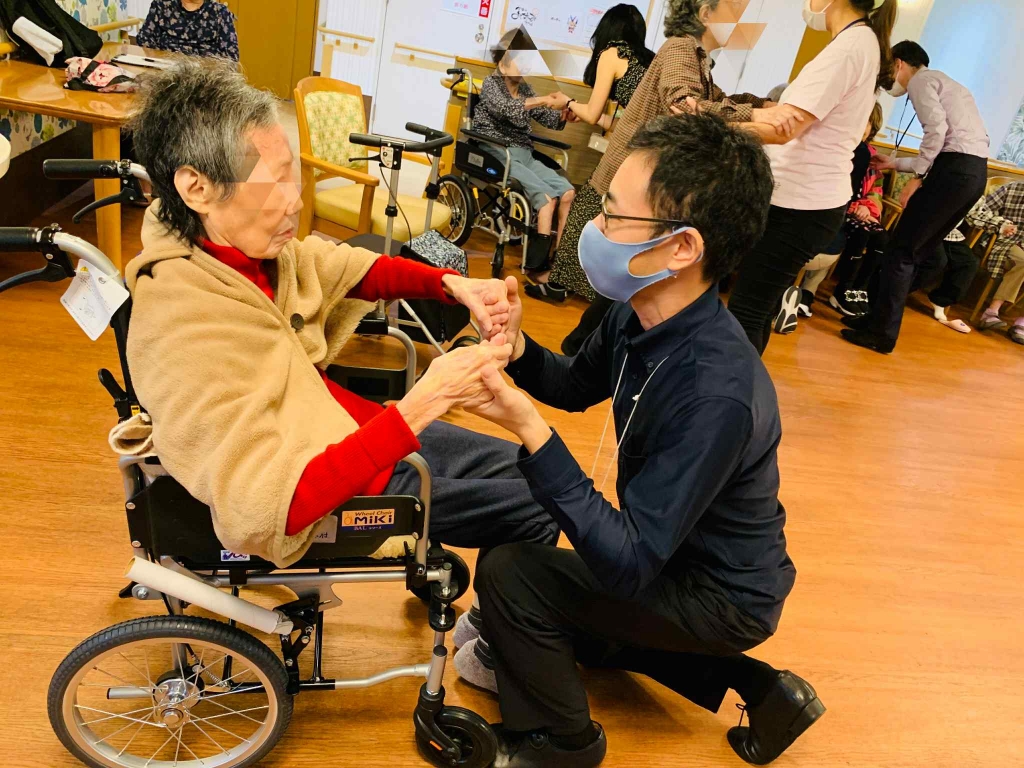 早く踊りたい気持ちを抑えながらも手をとると、ご利用者様から嬉しい気持ち、楽しい気持ちが伝わってきます。最後は少し会話も交えながら2025年そんぽの家丸の内様のタンゴセラピーを締めくくりました。