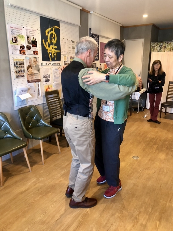 毎回参加される女性は、「重心の移動はPDにとって大事です。その意味で今日のレッスンは役に立ちました。」とのことでした。 また、ブランインドダンスを指導されている方は、「パトちゃんの体重移動の説明は実に説得力のある説明で引き込まれました。自分のレッスンの時に使わせていただくわ。」と、みなさん、それぞれ得たものがあったようです。