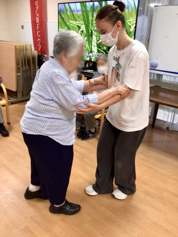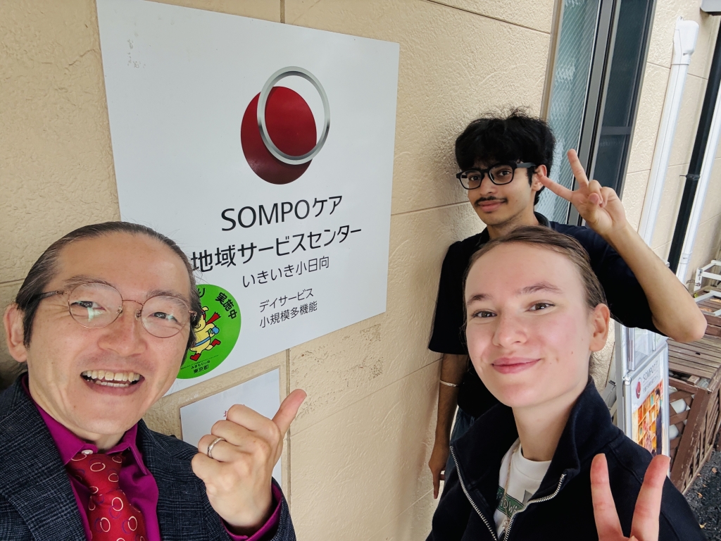 今日は、小雨で涼しい中、ハンズオン東京からご参加のスバームさん🇮🇳と、大学で交換留学生で、まだ日本に来て2週間というヴァレリアさん🇷🇺と一緒に茗荷谷にある「いきいき小日向デイサービス」へ行って来ました。