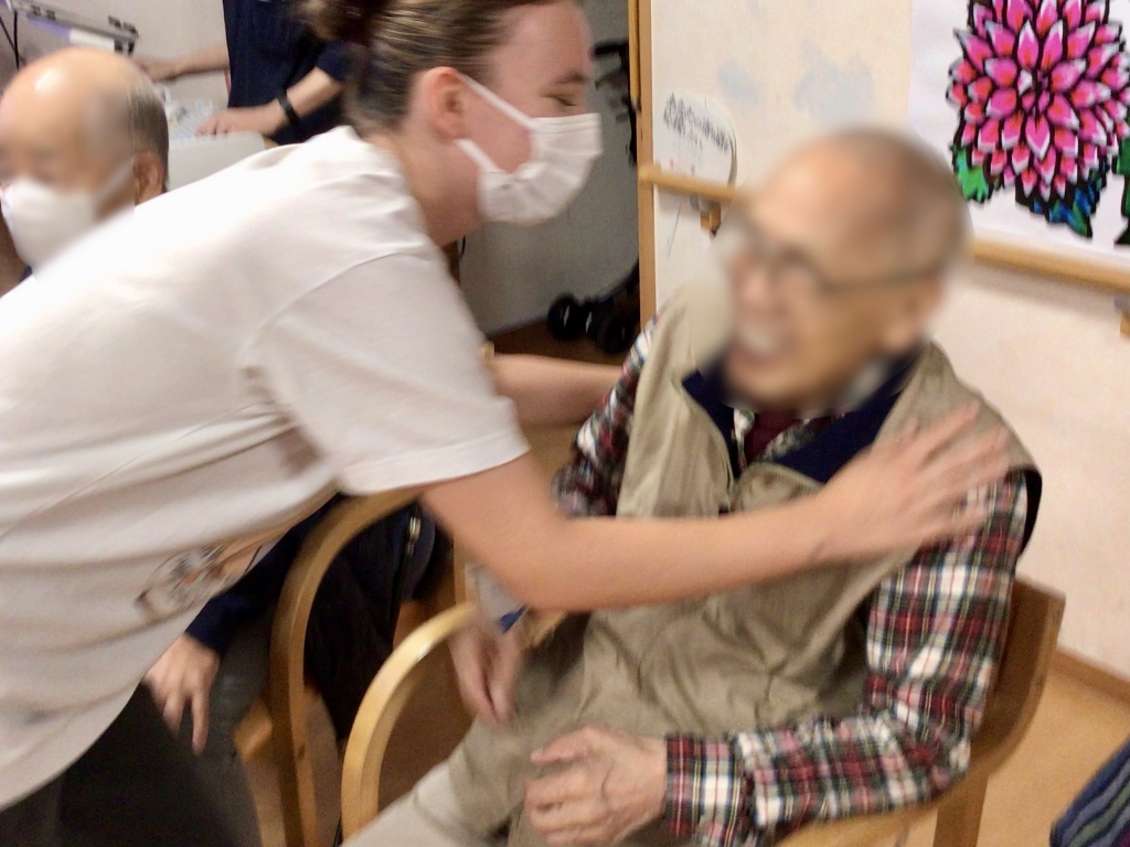 最後に行ったタンゴセラピー体操では、いつもいろいろコメントしてくださる男性ご利用者様が両手のひらをぱっと広げるポーズを考えてくださって皆さんとピッタリ揃えました。