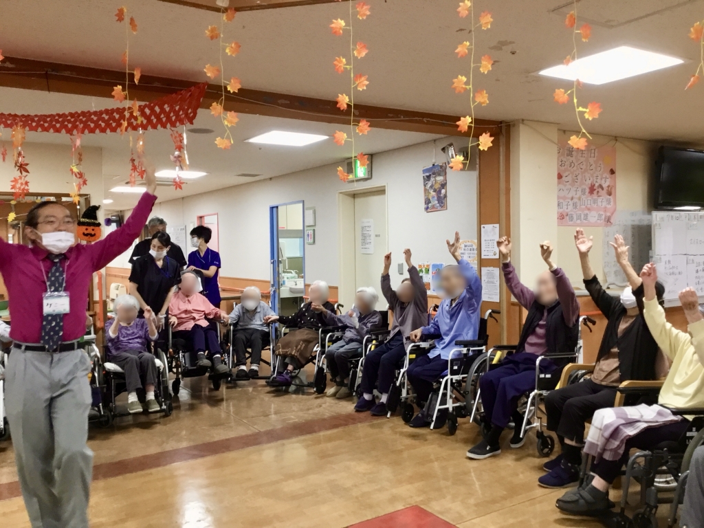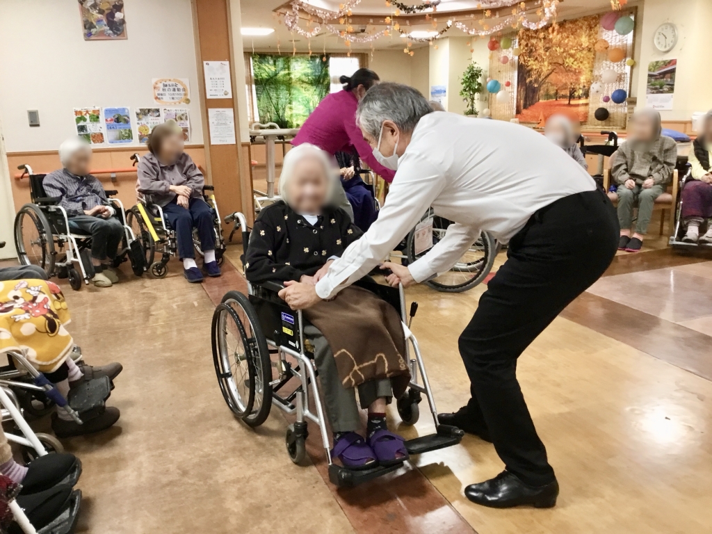 本日は、ボランティアのひろおさんと一緒に下板橋にある介護老人保健施設「池袋えびすの郷」へ行ってきました。ひろおさんはいつも栃木県から駆けつけてくださっています。