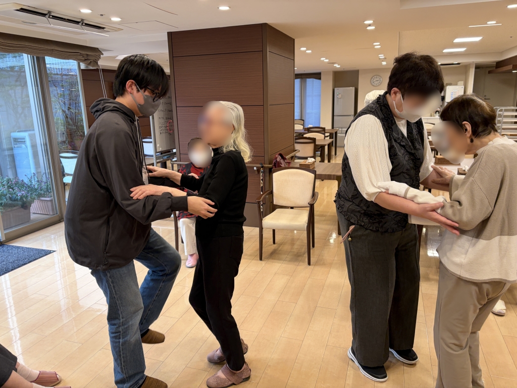 今日は、午前に江戸川橋の活動に行った後、午後にはこちら、四谷三丁目にある有料老人ホーム「ラヴィーレグラン四谷」へセラピストのえみさん、Hands-on東京から、中国人留学生のユウさんがご参加くださいました。ユウさんは、ご友人からの紹介で来てくださったとのことでした。