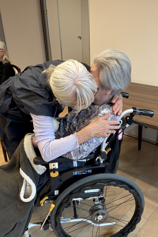 ダンスタイムに立とうとチャレンジされた車椅子ご利用のもう一人の方は、立って数十秒その場で足踏みをすると「もう辞めておくわ」と少し辛そうな表情をされていました。そして、そのあと座った後に、とても満足そうな笑顔で、座ったまま引き続き踊ってくださったのでした。