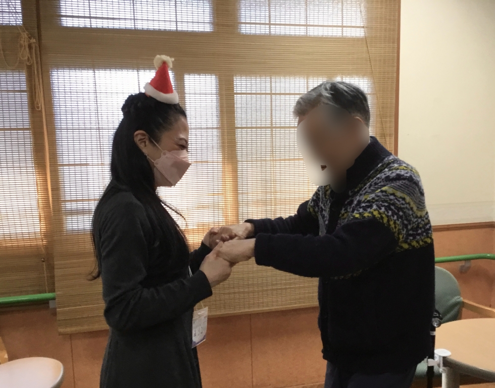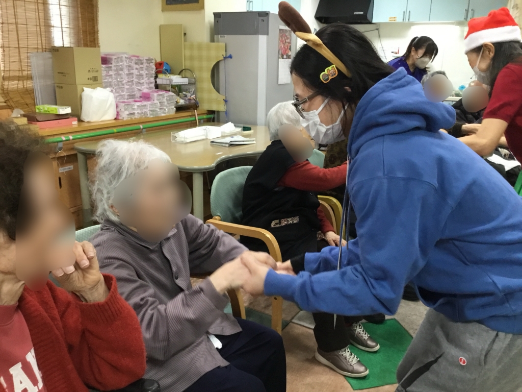 12月です!今日は、下板橋にある介護老人保健施設「池袋えびすの郷」へ。今日のボランティアメンバーはリーダーのケニーさんに私まりこ。ハンズオン東京からは中国出身のフィルさん、流ちょうに日本語を話されるキュートな方です。