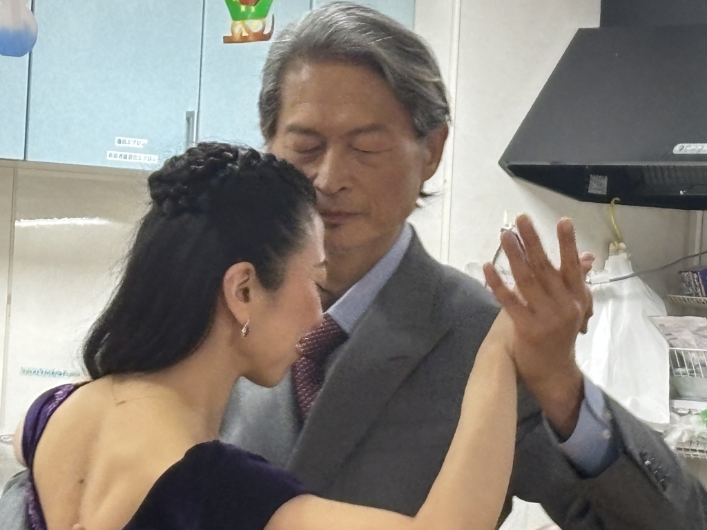 そしてそして…本日のスペシャルゲストはプロタンゴダンサーのMARIKOさんMAURICIOさんとタンゴ愛好者のこうじゅんさん。クリスマススペシャルの企画で、皆さまに素敵なダンスをご披露くださるのです!MARIKOさんのお母さまの「のぶちゃん」もご参加くださいました。