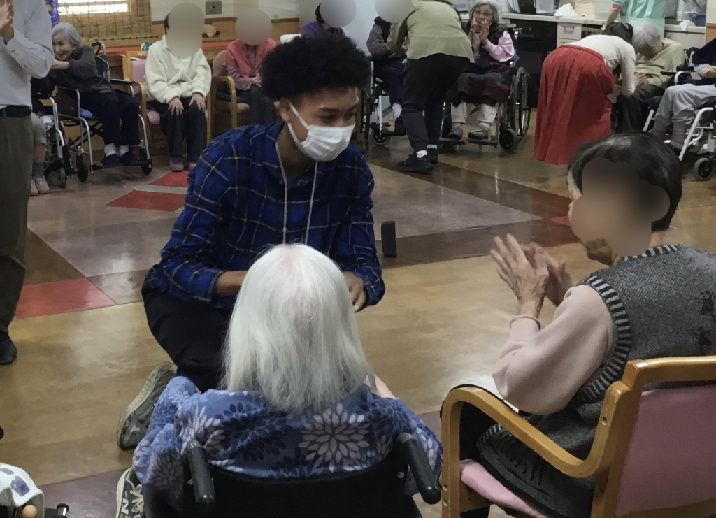 今回が初参加の若いボランティアメンバーも最初は戸惑いながらも次第に積極的に皆さまにお声をかけてダンスにお誘いしています。話が盛り上がっている方々もいらっしゃいました。