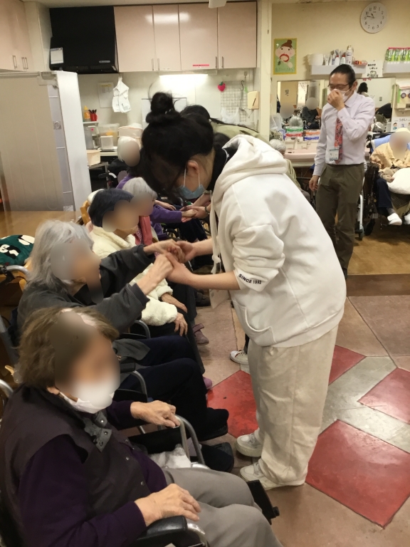 恒例のバースデー!1月生まれの方が5人もいらっしゃいました。「ハッピーバースデー」声を合わせて歌います。皆さま手拍子でご参加くださいます。