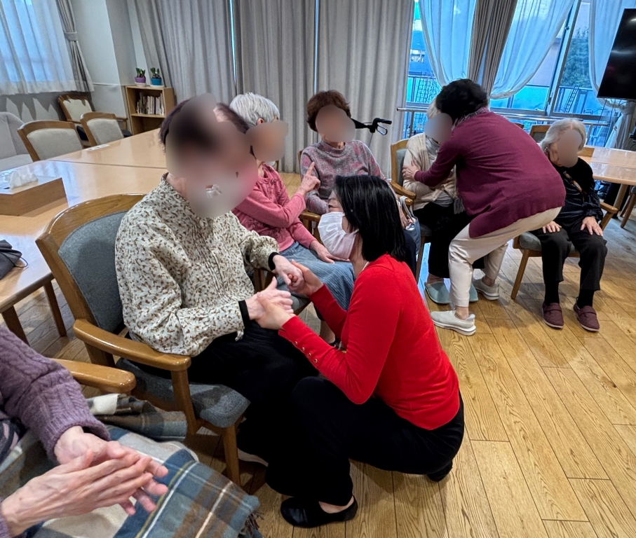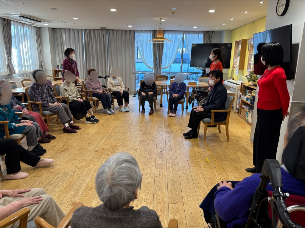 ご入居者は通常、三々五々集まられるのですが、今日はすでに輪になって待っていてくださいました。