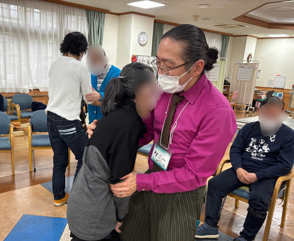 いつものように、お一人ずつにご挨拶、ケニーさんのストレッチから始まります。