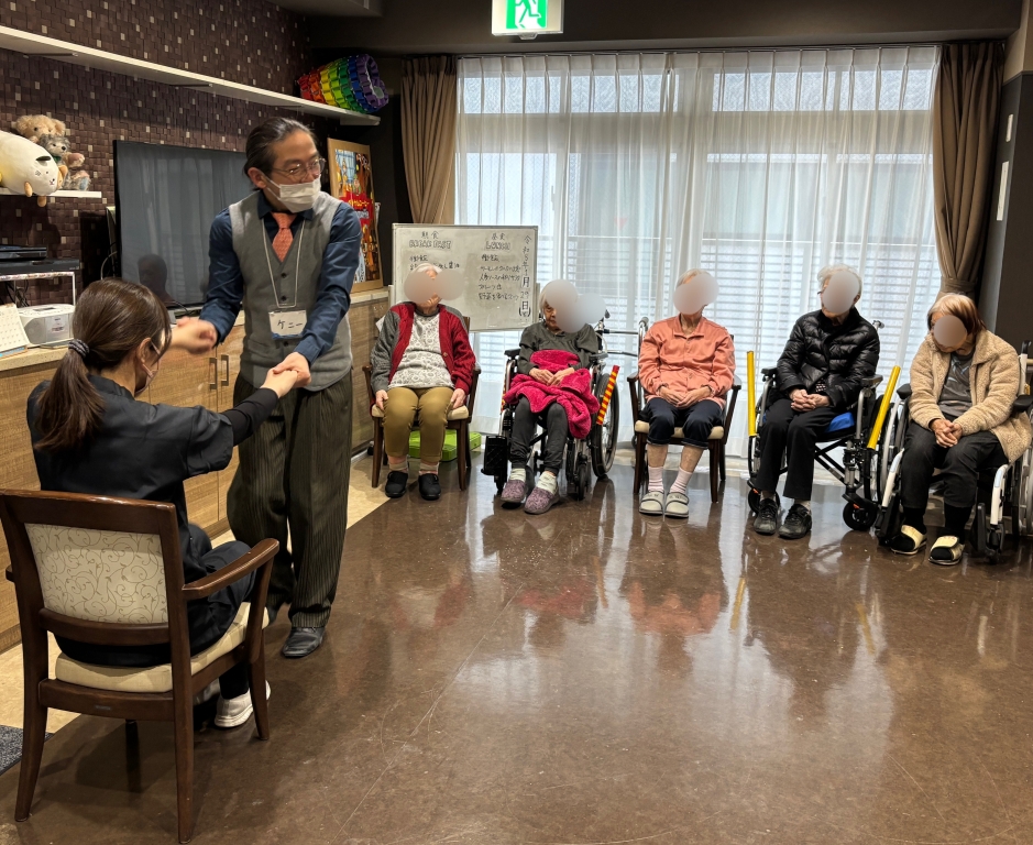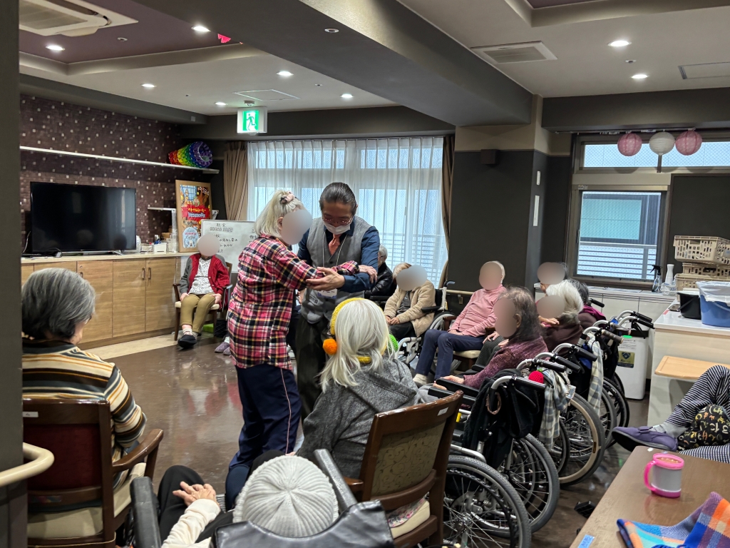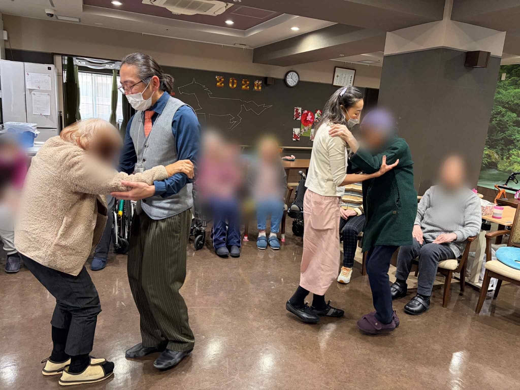 普段はあまりレクリエーションに参加しない方々もフロアでステップを踏んでいらっしゃる姿に、職員の方も驚いていらっしゃいました。よかったです。