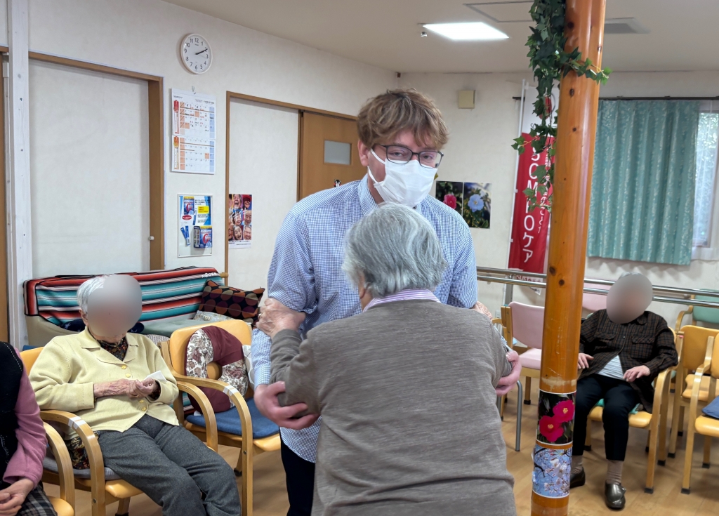 最近よく、茗荷谷に来ているなあ…と思ったら、前回は先週の金曜日でした。茗荷谷駅近くの「いきいき小日向デイサービス」へ。待ち合わせ場所に集まったのはリーダーのケニーさん以下、先輩セラピストのちはるさん、ハンズオン東京からは中国出身のリさんとアメリカ出身のジェレミーさん、そして私まりこ、今日はこの5名で向かいます。
