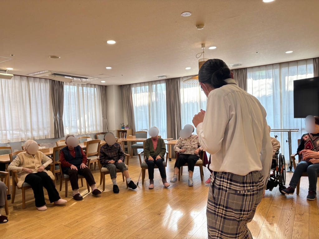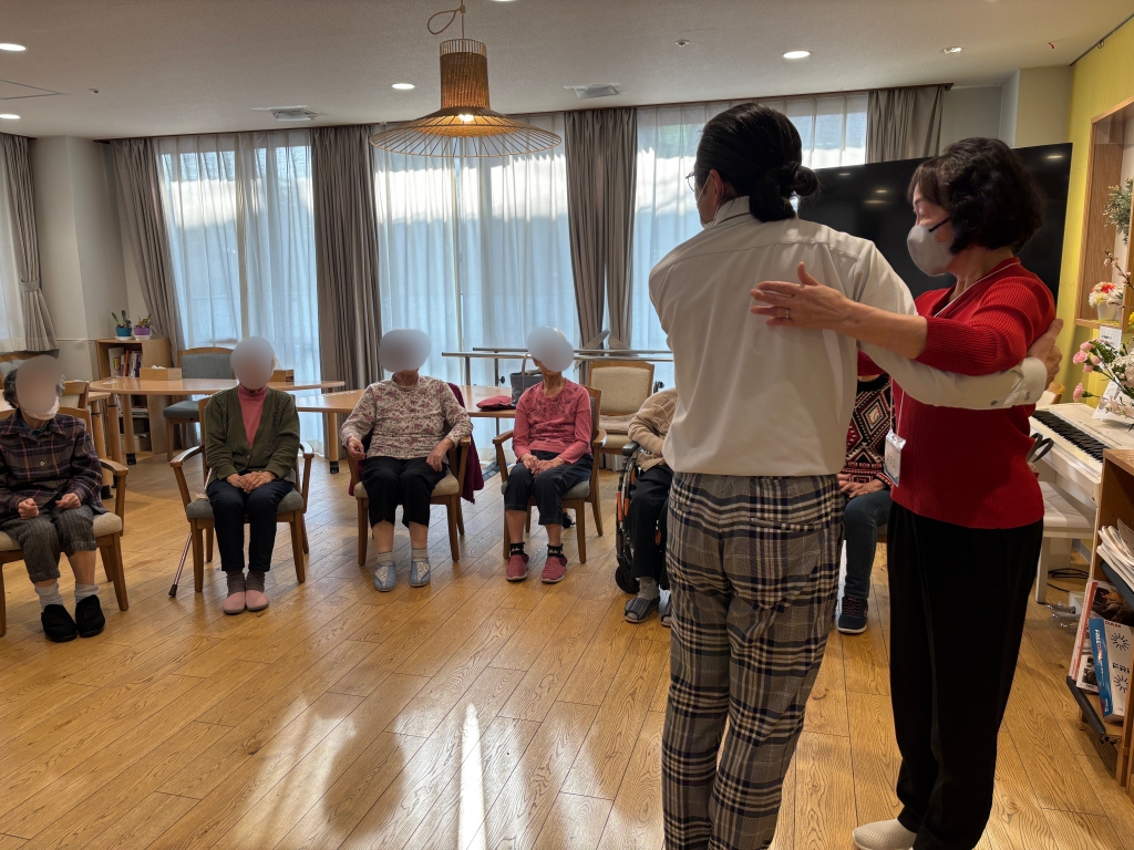 そしてダンスタイム。入所なさったばかりで初参加の方も「初めてですけれど、よろしく」とエレガントに会釈してくださいました。一緒に楽しみましょう!