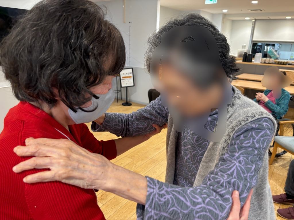 初参加のあの方も、車椅子から立ち上がってケニーさんと踊っていらっしゃいます。ひざを痛めて普段は立ち上がることができない方だそうで、施設の職員さんが驚いていらっしゃいました。お顔の色がすっかり明るくなられて、私たちも嬉しい気持ちになりました。