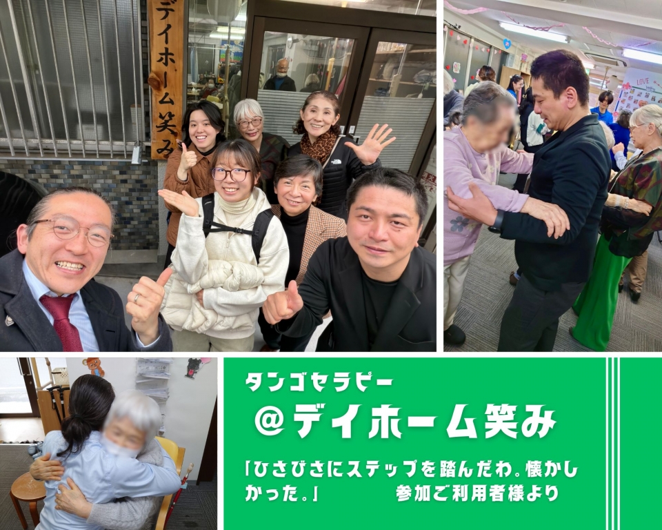 今日は四谷三丁目にある『デイホーム笑み』へ、セラピストの久枝さん、えみさん、そしてハンズオン東京よりヨウさん🇨🇳とキョさん🇨🇳、そして、いつも虎ノ門で開催しているたんだメンバーのラウラさん🇵🇪、そして、本日朝からタンゴセラピスト講座を受講されているけんさんがご参加くださいました!