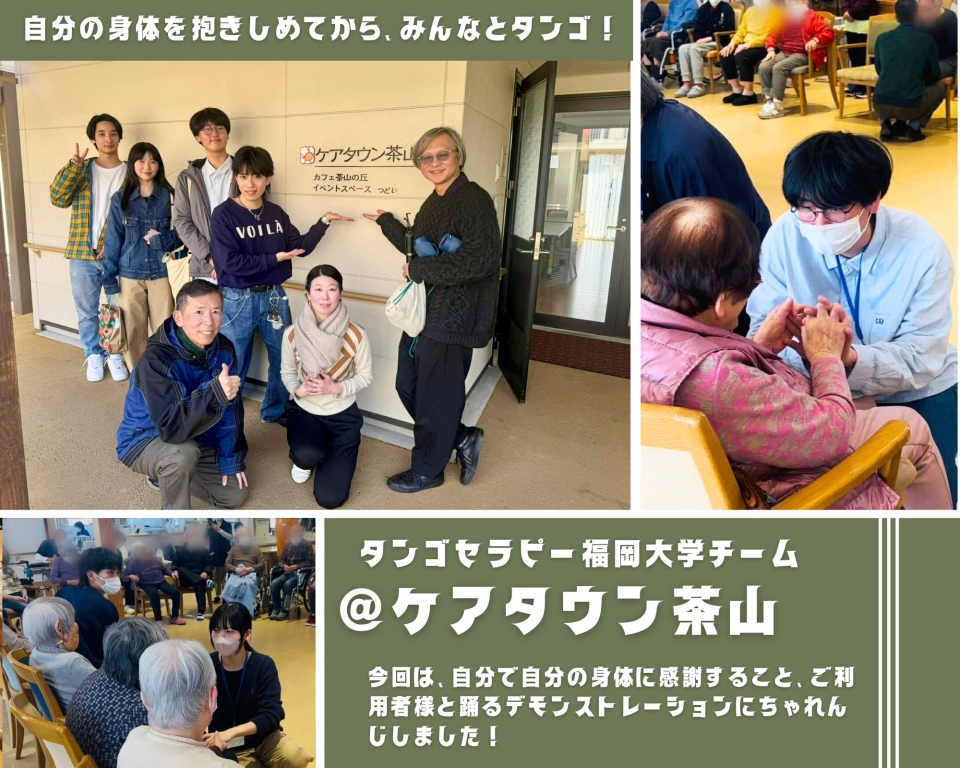 この日は、ケアタウン茶山さんにセラピスト3名と福岡大学の学生4名で伺いました。 大学が長期休暇中のため、いつもより少人数での訪問でしたが、4名はいずれも参加3回目以上の学生で、自ら率先して動いてくれ、とても心強いチームでした。