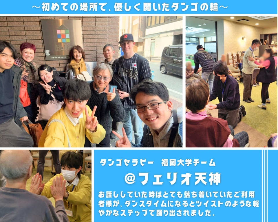 3月9日(月)、今回は新たな訪問先として、フェリオ天神さんでタンゴセラピーを行いました。