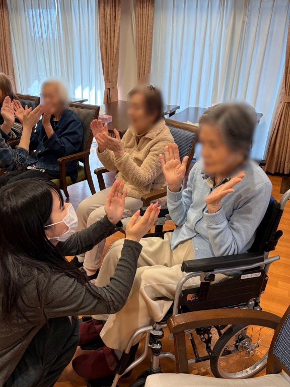 皆さん介護施設もタンゴも初めての方ばかりでしたので、最初は少し緊張感がありましたが、施設の皆様との挨拶タイムにたくさんご利用者様から話しかけられて、笑顔がたくさん出ていました。