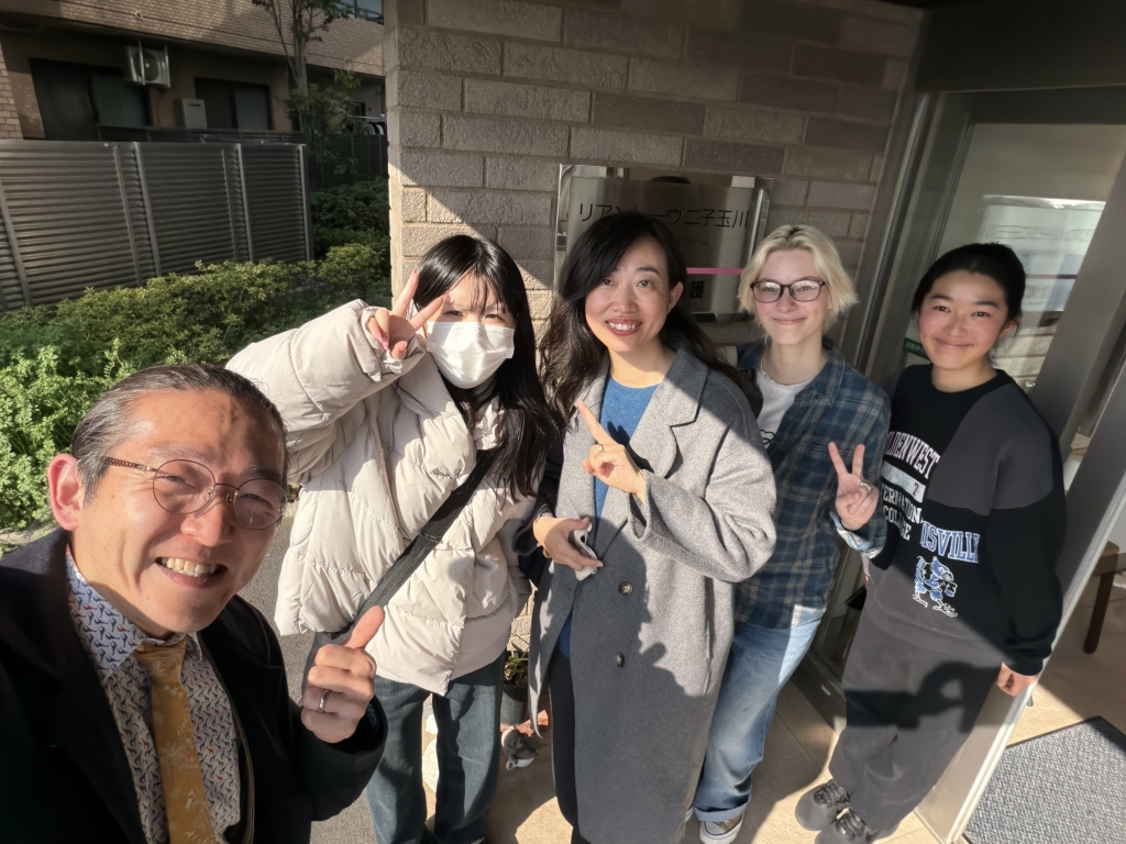 今日は私とハンズオン東京より、エマさん🇺🇸、リュウさん🇨🇳、ファンさん🇨🇳、ミサトさん🇯🇵がご参加くださり、二子玉川にある有料老人ホーム、リアンレーヴ二子玉川へ行ってきました。