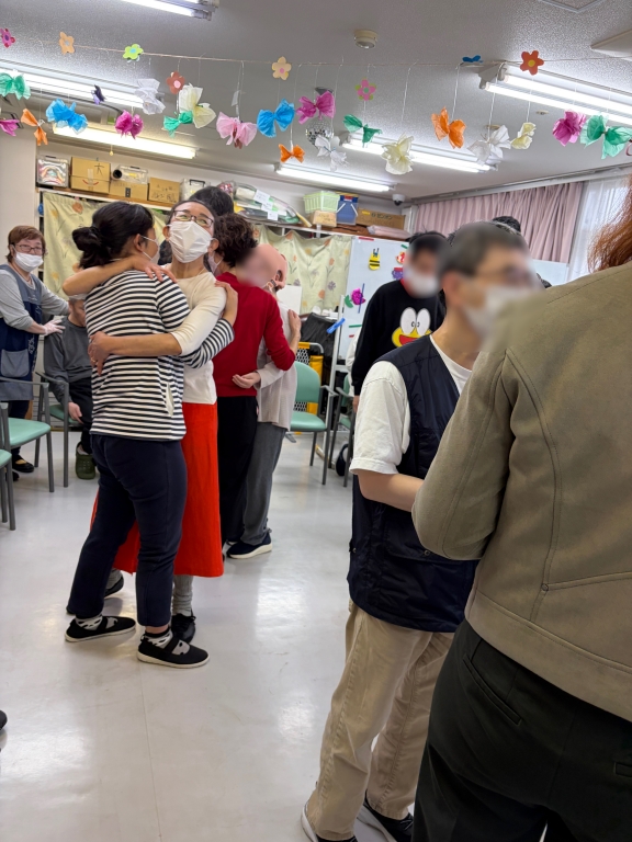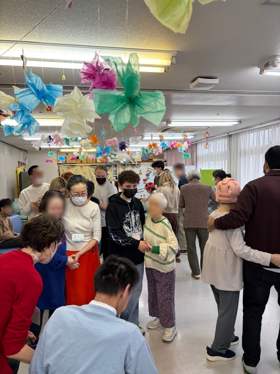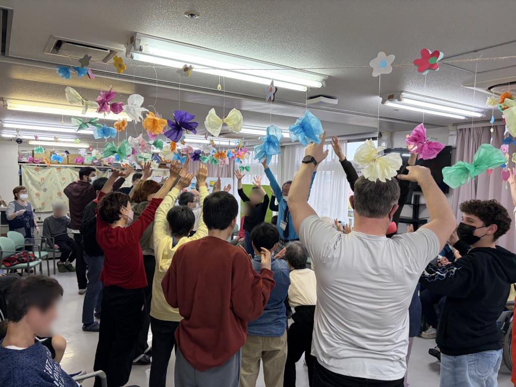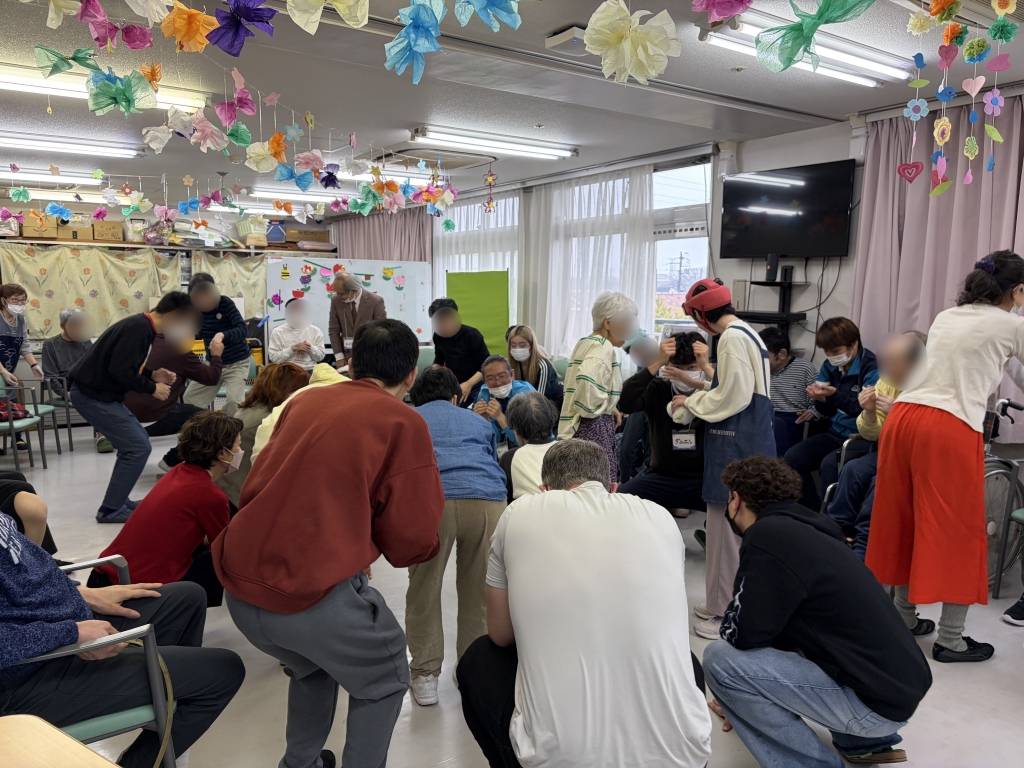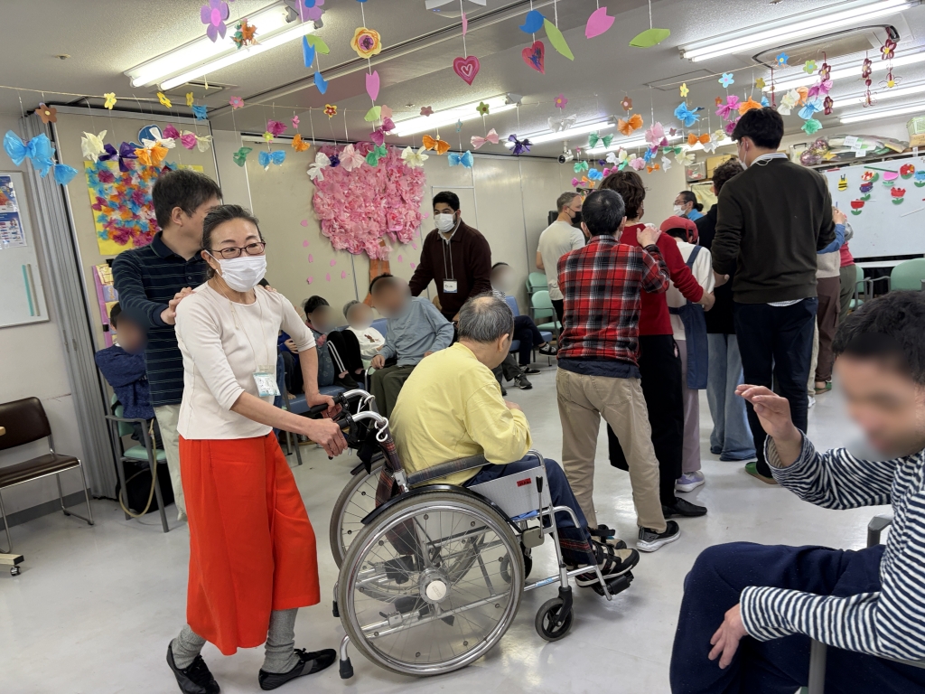 こんなに多くの方がご参加されることは本当に久しぶりでした。まずはみなさんに活動のレクチャーをするために施設にお部屋をお借りして、活動中の注意点をシェアしました。そして早速ご利用者様の待つ会場へ。