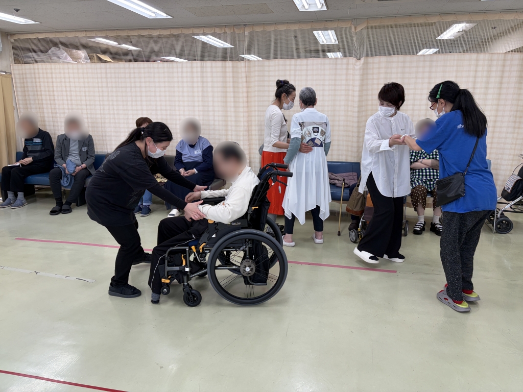 施設に到着すると、ムードメーカーの職員さんの岩田さんが玄関で待っていてくださいました。そして、本日はちょうどタンゴセラピーと同じ時間から避難訓練があるとのことで、少しスタートが遅れる旨を聞きました。